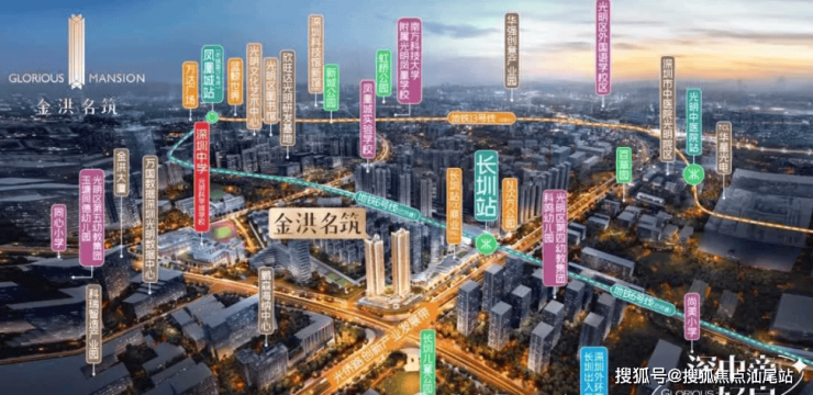 交通配套:金洪名筑位于深圳光明区凤凰街道办光侨路与东长路交汇处西北侧,地处凤凰城板块,是光明门户枢纽。交通便捷,紧邻6号地铁线“长圳站”,步行5分钟内可达,同时周边有多条主干道和高速路,如光侨路、东长路、南光高速、龙大高速等,可快速通达南山、福田等城市核心区域。