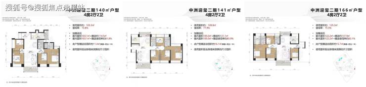「中洲迎玺二期」有五栋住宅楼,分别为2-1栋和2-2栋层高是31F,梯户比是2T4,以及2-3栋、2-4栋、2-5栋层高是49F,梯户比是3T3和3T4,推出约746套,面积92-166㎡户型。