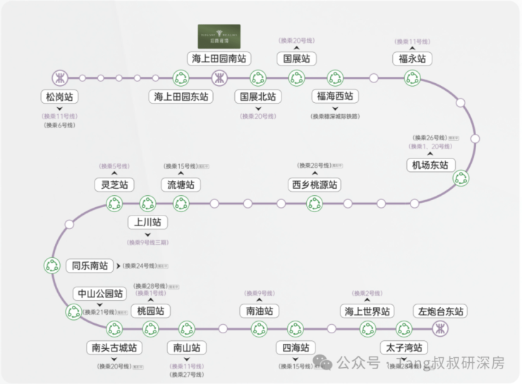 轨道交通:家门口地铁12号线海上田园南站,便捷换乘11、20号线,快速通达宝中、南山、福田。一期是最靠近地铁的。