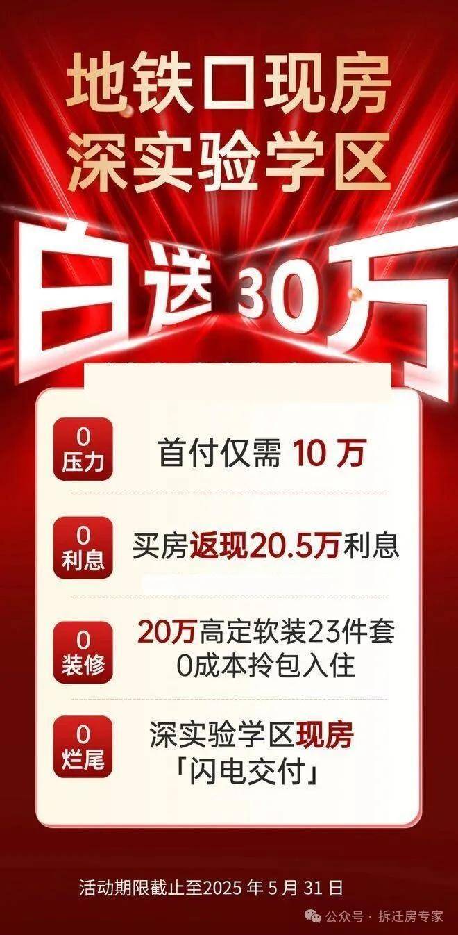 首付只要10万,购房返现20.5万利息,再送价值20万高定软装23件套!名额有限,截止到5月31日!