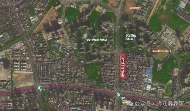 和成金竹家园位于 华为职工公寓“华为荔枝苑”的南边,距离5号线杨美站约350米,距离深圳实验学校坂田校区约500米!