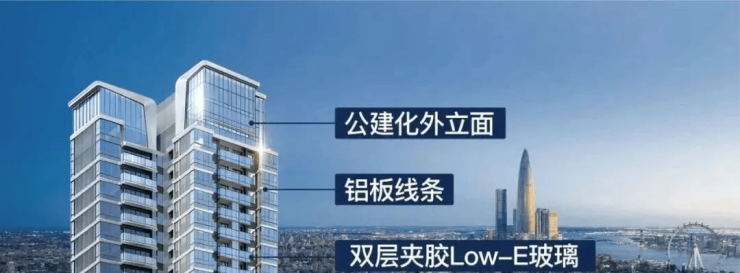 『城市峯面』:双层夹胶low-e玻璃+铝板线条外立面,配置一体化系统窗,同频豪居审美。