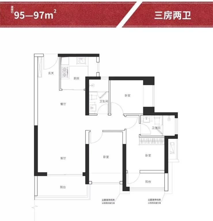 2.建筑面积约95-97㎡户型