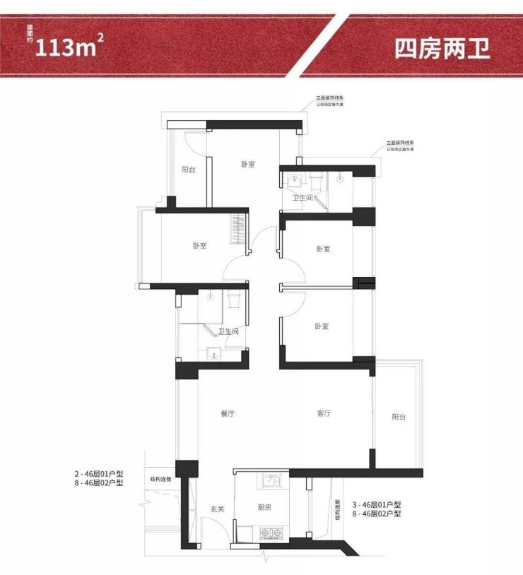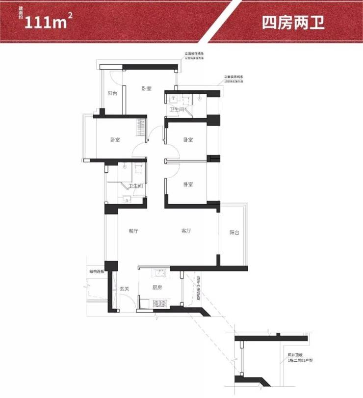 3.建筑面积约111-115㎡户型