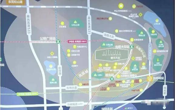 光明区位于粤港澳大湾区及广深港科技创新走廊上的重要节点,以光明科学城-松山湖科学城为重点,推动大湾区综合性国家科学中心先行启动区建设,光明科学城将建设成为粤港澳大湾区国际科技创新中心的核心功能承载区和综合性国家科学中心的重要组成部分,打造世界一流的综合性国家科学中心集中承载区。