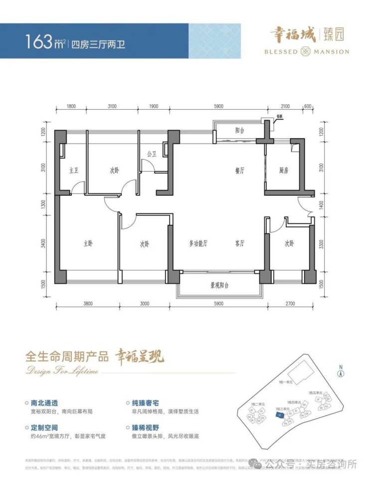 约163㎡4房3厅2卫(方厅),折后:约1000-1030万。