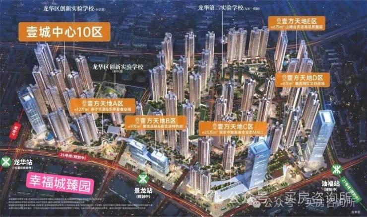 项目地理位置优越,与壹城中心商业MALL仅一路之隔,距离4号线和25号线的龙华站仅400米。未来,在楼盘200米范围内还将规划两所九年制公办学校,楼下在建的人民路学校也是龙华第二实验学校华美校区。幸福城臻园将建设为41-56层的超高层住宅,为住户提供便利的生活配套和良好的教育资源。