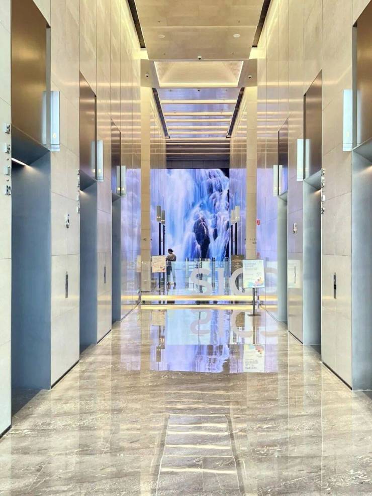 大堂高度:双大堂 1层11.4米/5层9.6米