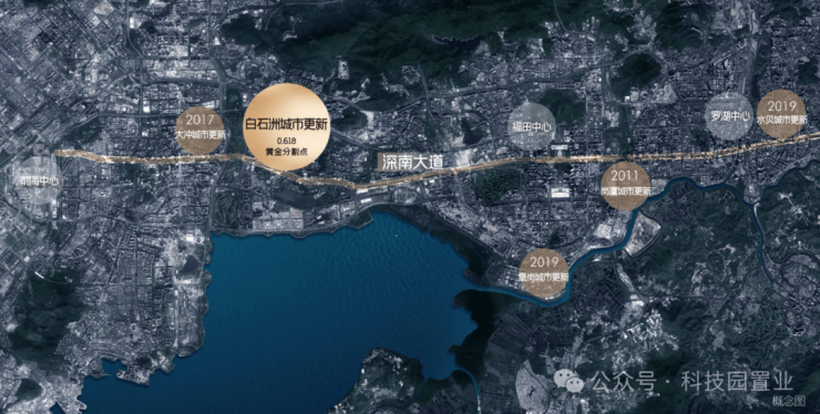 在伦敦、纽约这样的超级城市,其城市主轴的黄金分割点上均屹立着城市超级影响力的项目,如伦敦金丝雀码头、纽约中央公园,而深圳的发展主轴深南大道自东向西,绿景白石洲正处于黄金分割点之上。项目位处城市GDP第一的南山区,深南大道与大沙河科创走廊十字交汇点,代言深圳发展高度。