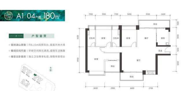 • 180㎡的4房2厅2卫:折后总价1099 - 1205万/套。