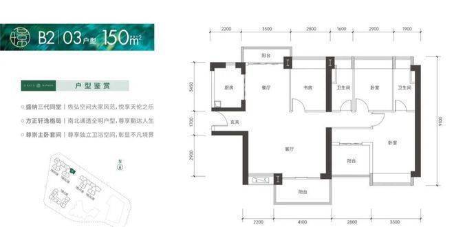 • 150㎡的4房2厅2卫:折后总价910 - 999万/套。