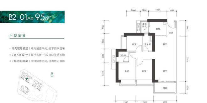 • 95㎡的3房2厅2卫:折后总价525 - 556万/套。
