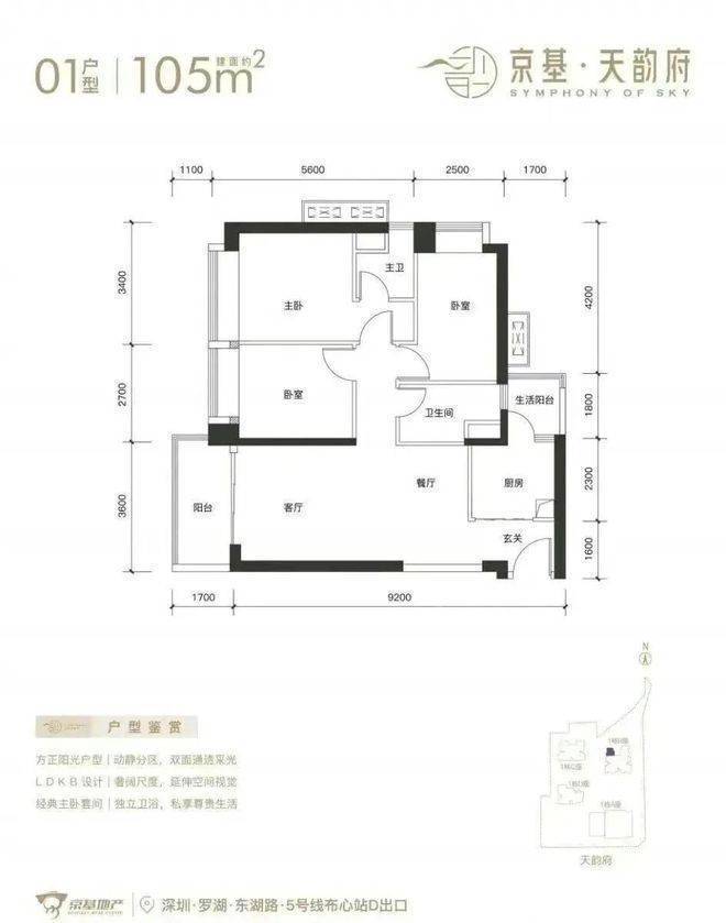 先抛开产品部分,京基天韵府的素质绝对不差,其位于罗湖区东湖街道仁心路与围岭中路交汇处西北侧,属于罗湖的老牌居住区——布心片区,周边配套十分丰富,距离地铁5号线布心站仅约200米,步行4分钟,实打实的地铁物业,出行非常方便。