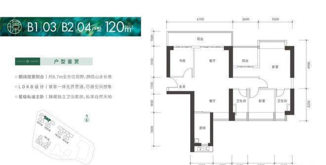 • 120㎡的4房2厅2卫:折后总价695 - 795万/套。