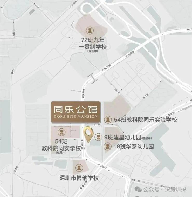 同乐公馆,位于深圳市南山区南头街道同乐片区中山园路东侧,地处南山与宝安交界处,紧邻地铁12号线(在建)同乐南站,步行距离约500米,项目坐拥南山核心区位,毗邻科技园、前海自贸区及留仙洞总部基地,5站可达高新园,辐射粤港澳大湾区核心产业带,具备承接高端人才居住需求的潜力。