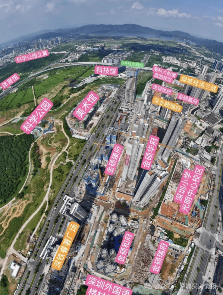 满京华金硕悦府,是新规楼盘100%得房率,科学公园+光明湖景观,且做到了户户朝南或南北通透格局,6号地铁线光明站距离仅400米。