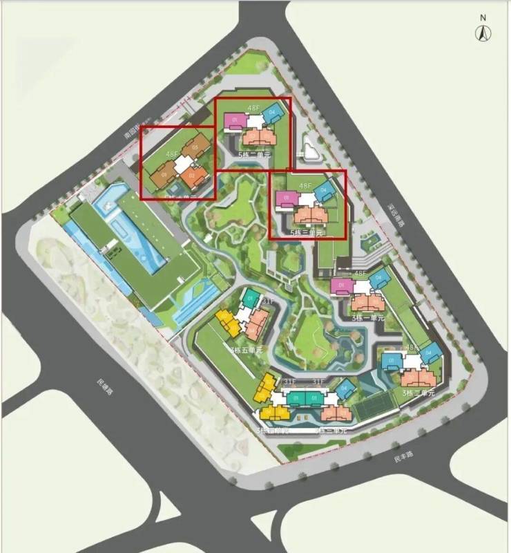 深圳北核心区中洲迎玺三期,匠心规划8栋住宅塔楼+1栋幼儿园,打造高品质生态住区。项目总占地约3.68万㎡,总建筑面积约21.9万㎡,计容积率建筑面积约16.5万㎡,容积率4.48,总规划1272户住宅,配建1405个停车位。楼栋布局科学:3栋3-4-5单元为31层舒居高度,3-1-2单元及5-1-2-3单元为48层地标高度,满足不同视野需求。其中,套内面积小于90㎡的实用户型达1005套,适配多元家庭结构。