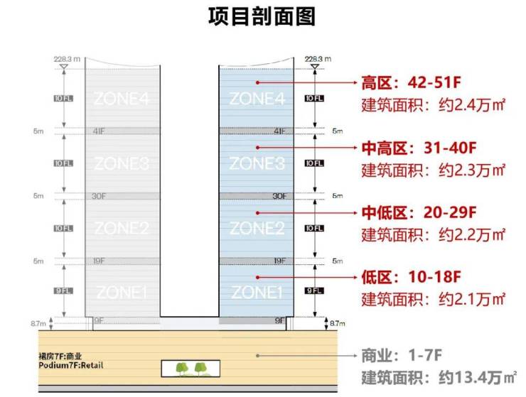 🔸客梯数量:高区6部,中高区5部,中低区4部,低区3部