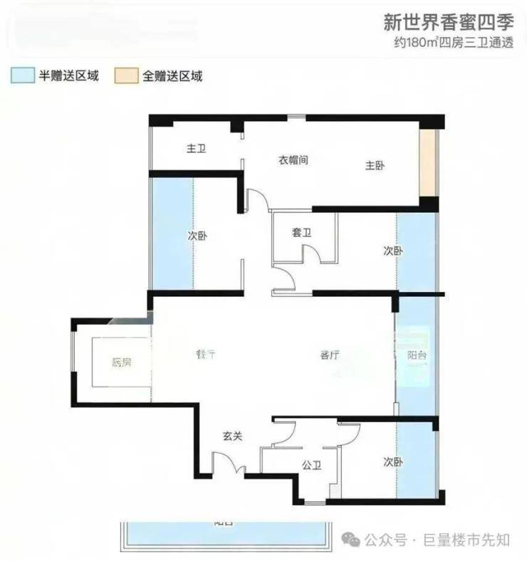 户型紧凑,在商品房的设计上,户型数可能相对较少,增大面积,毕竟这个地段的定位人群并不是以小户型为主。
