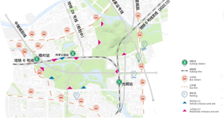 项目位于6号线光明站、光明大街站1公里辐射范围内,交通便利,北面是规划中的光明新城市“绿肺”——科学公园。