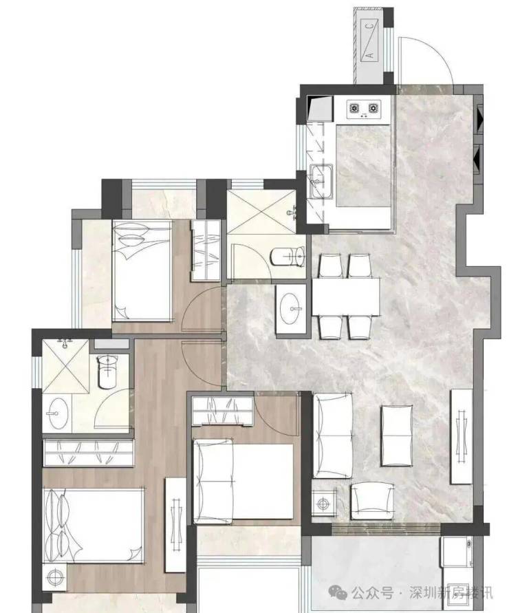 最低门槛67㎡2房、79㎡3房1卫,开盘有一定折扣优惠,最低预计总价300多万上车2房,是目前整个龙华区域在售新盘中算是最低上车门槛。