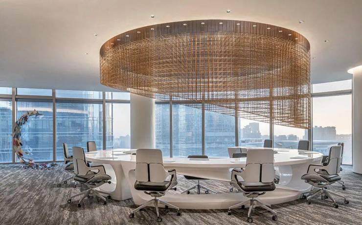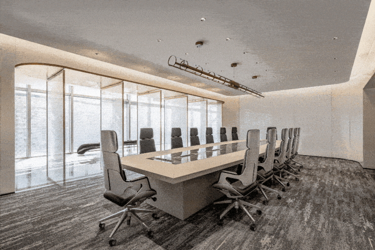 半弧形办公圆桌,打破传统直线布局的办公秩序。