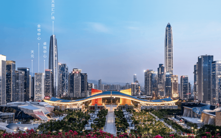 项目由金地、卓越、大百汇联合打造,由KPF担纲建筑设计,获LEED金级预认证,践行绿色建筑可持续发展。依托于 140 万㎡深圳中心综合体,项目涵盖超甲级写字楼、都会商业、高端住宅、城市豪宅、艺术街区等多元业态,外享福田CBD丰富的商业配套,内配18部日立双轿厢电梯以及茶室、商务洽谈室、多功能路演厅、共享会议室、食堂、餐吧、健身房等公共配套,提升商务效率,满足办公需求