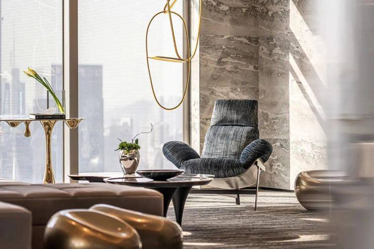 休息区为商务精英在工作之余营造了轻松舒适的环境,多功能的区域空间,会客、商业洽谈、艺术展示皆可。
