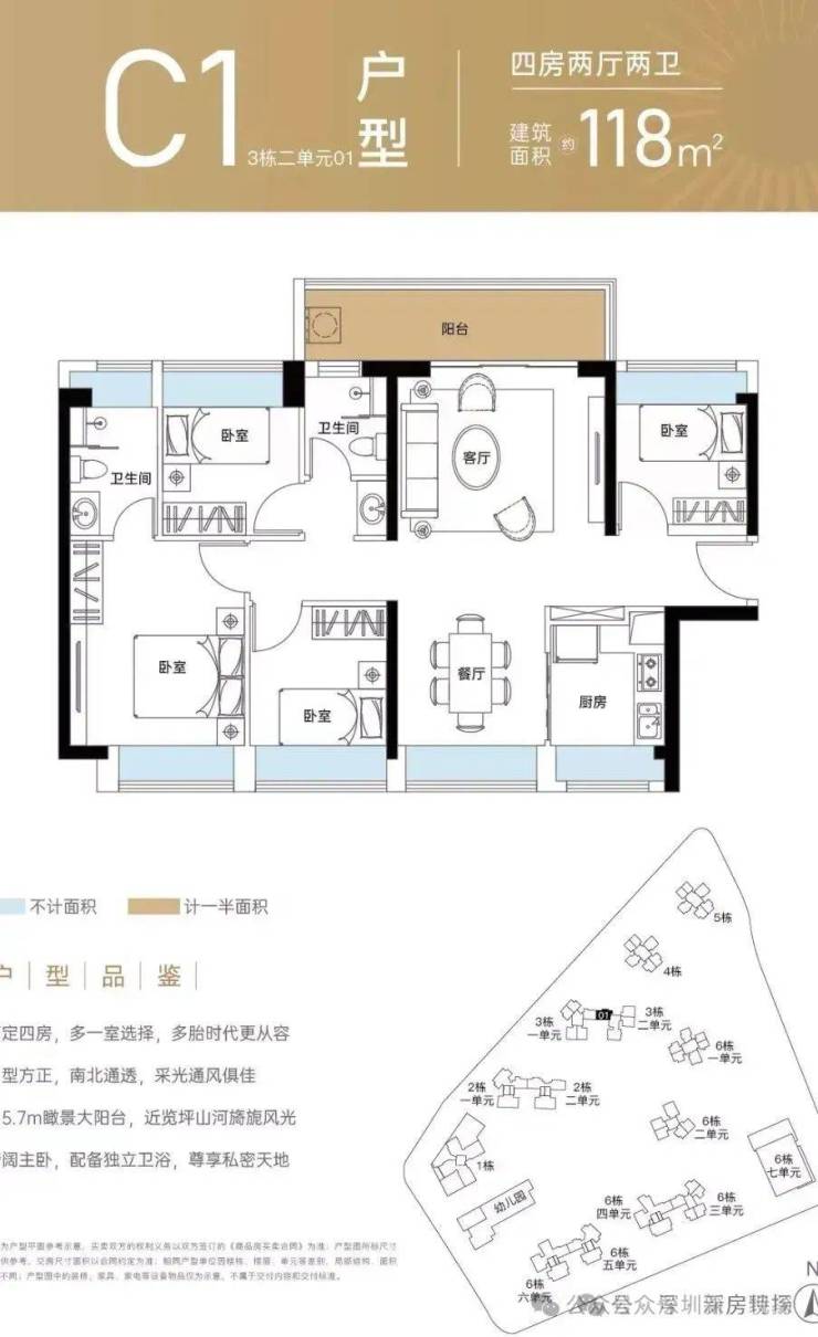 3、小区户型得房率整体偏低,加上赠送预计是在80%左右,对于目前坪山区域内的新房,这个得房率确实不占优势。