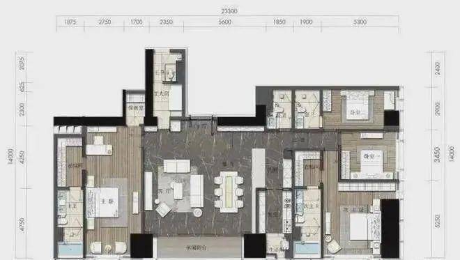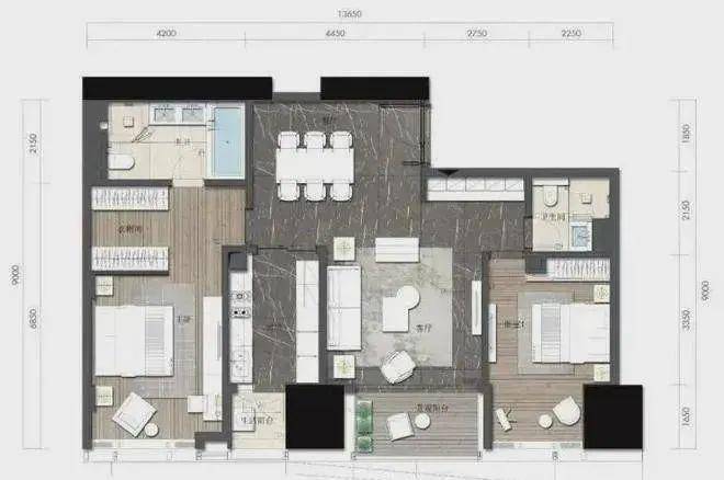 约164㎡2房2厅2卫(独立入户玄关,动静分离,约33㎡豪华主卧,承载品质生活)