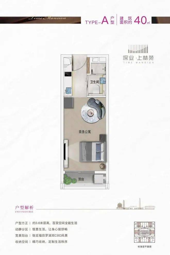 单价4万+,总价163-525万,酒店托管,带租约、40㎡的租金40万/5年。