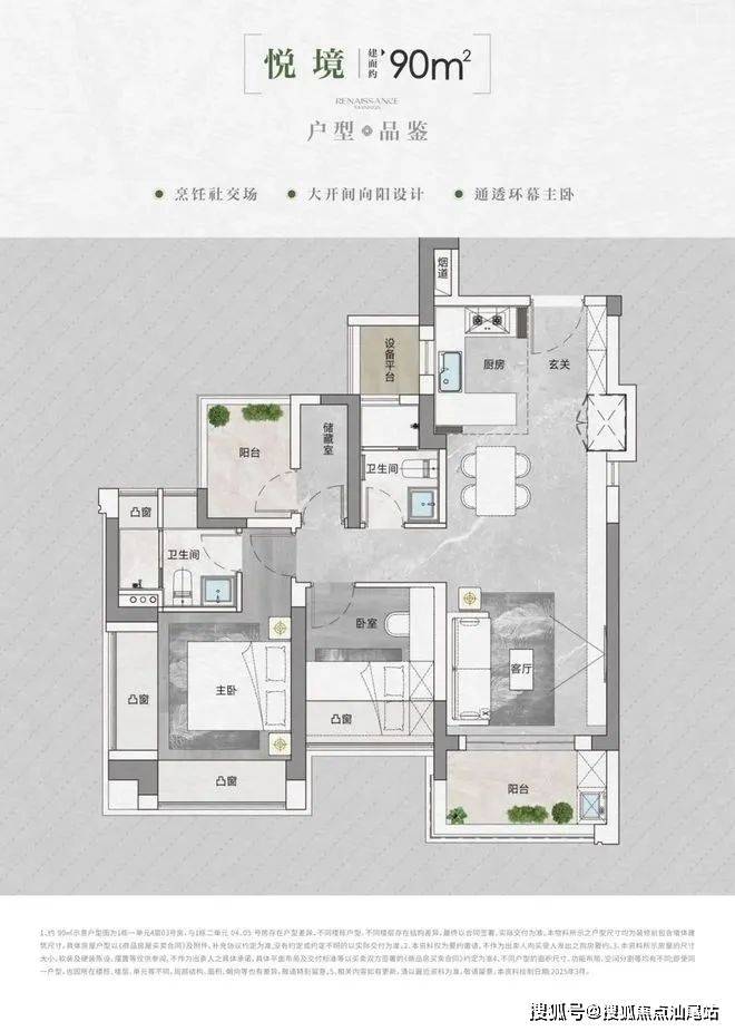90㎡三房两卫:紧凑实用型户型,适合3-4口之家