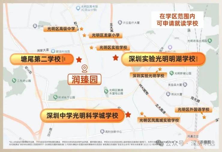 优质教育:社区内配置幼儿园,西北侧地块为九年一贯制学校(规划中),与项目一路之隔。大城规划3所九年一贯制学校、其中一期学校深圳实验光明明湖学校2025年9月已开学(信息源自深圳光明学校公众号),项目3公里范围内涵盖深圳中学光明科学城学校、深圳市光明实验学校等。