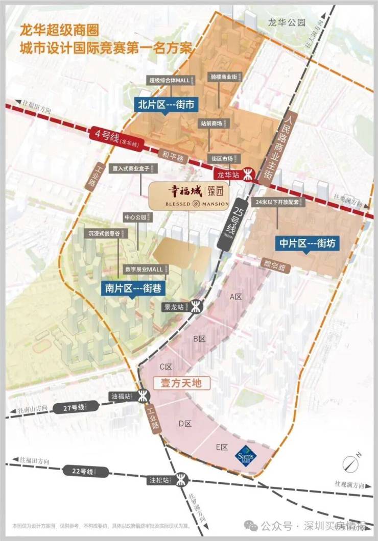 幸福城臻园位于龙华人民路与建设路交汇处西南侧,隶属龙华商业中心城市更新单元北片区。该旧改项目堪称龙华的 “巨无霸”,总体量达 161 万㎡,规模仅次于鸿荣源壹城中心。