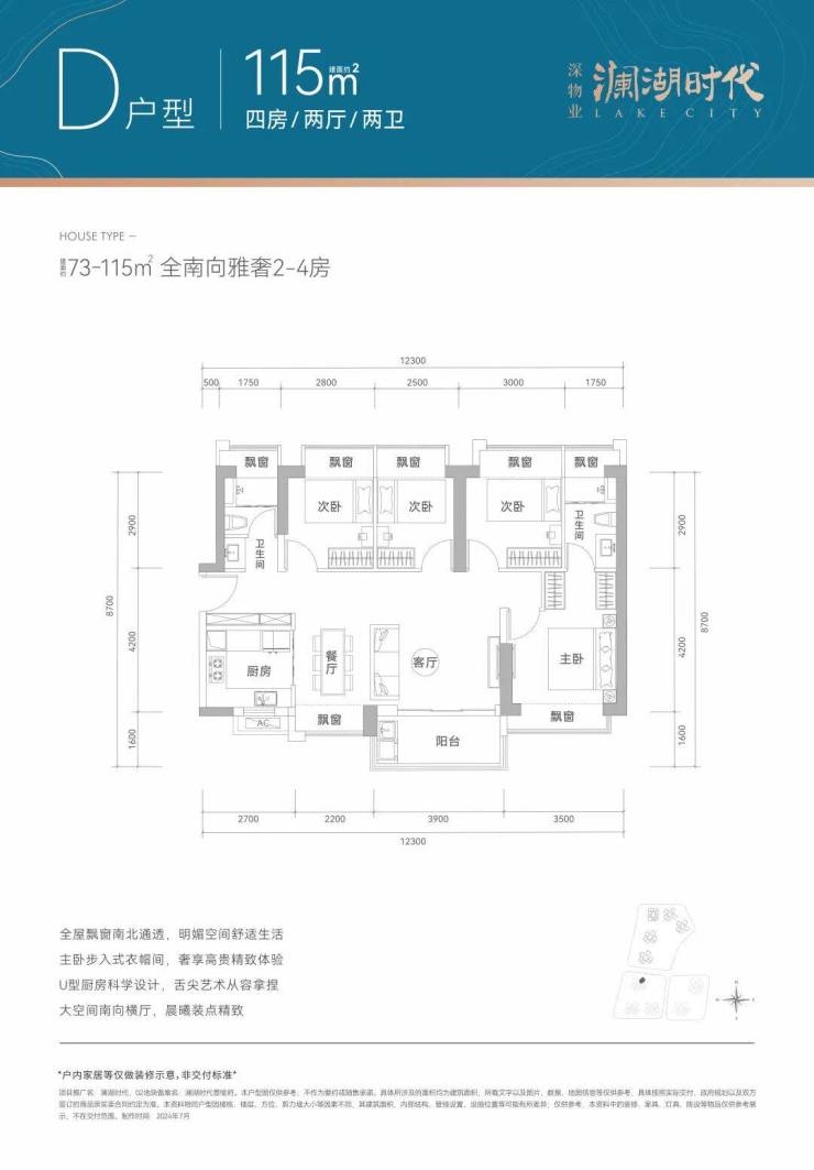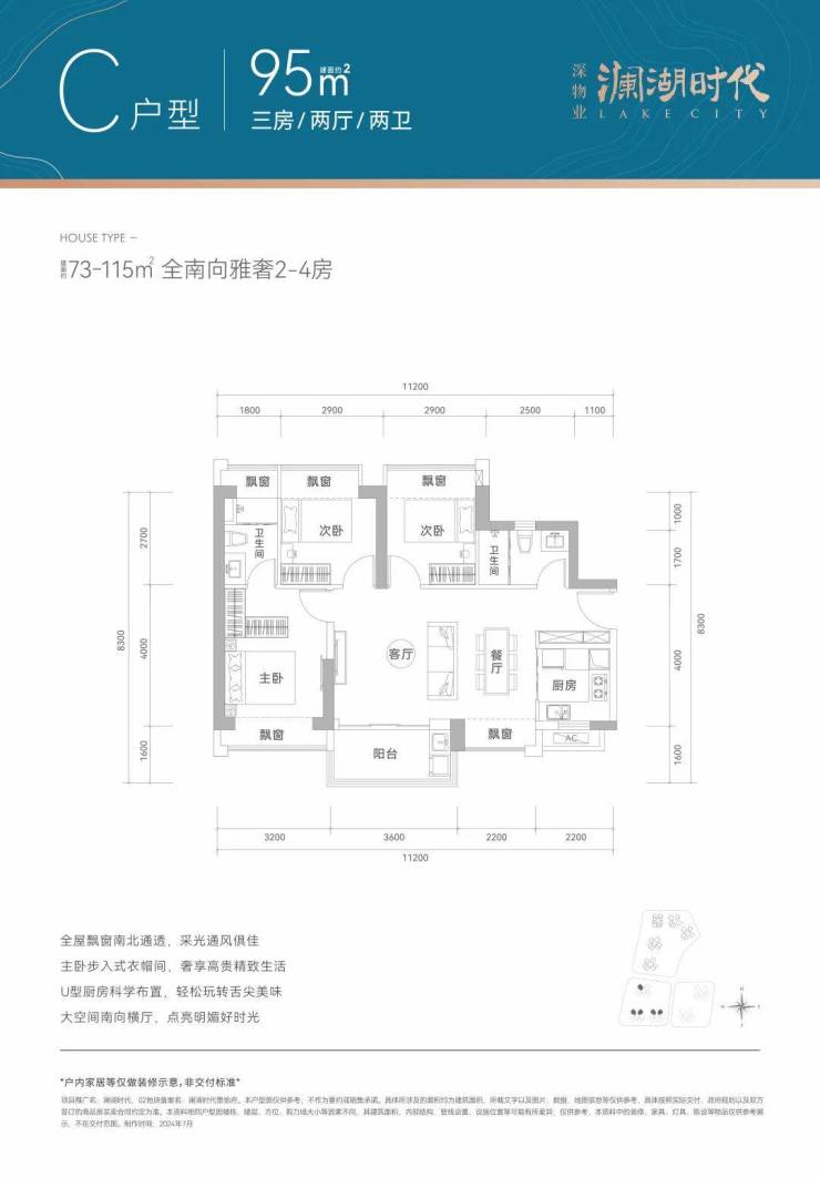 产品面积段:建面约73-115㎡全南宽奢2-4房