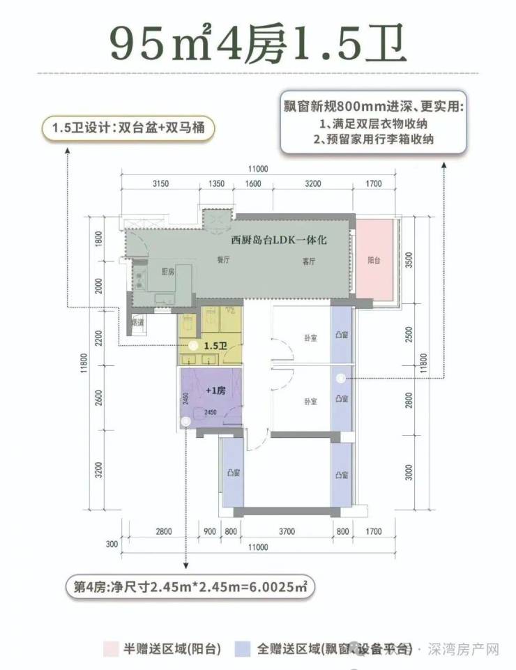 本次推售的产品属于新规设计,据说综合得房率达到95%左右,其中最亮眼的是95平做到4房+1.5卫,105平做到4房2卫。