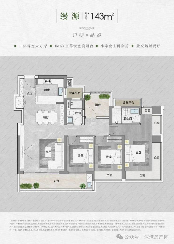 3、户型设计:主力户型90-143㎡的3-4房,新规设计提升实用性(如设备平台可改书房)