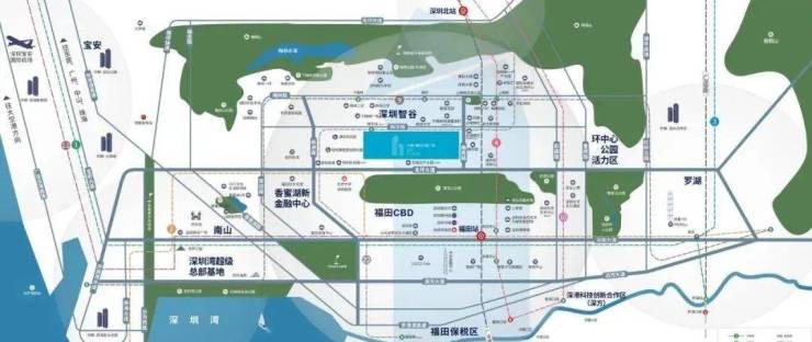 享福田、皇岗双口岸,联动福田站、深圳北站双高铁,链接深港,对话世界。