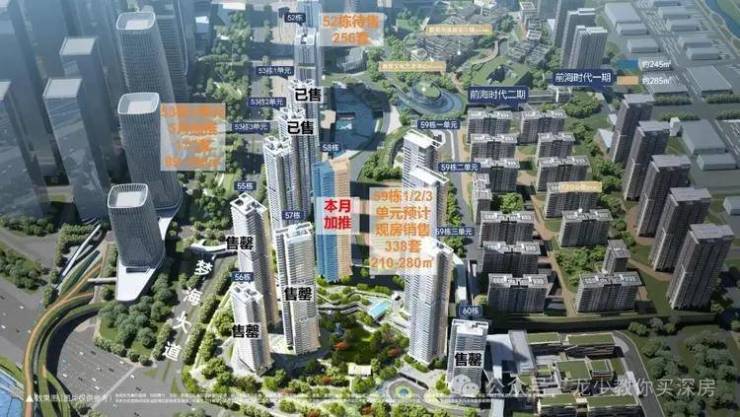 一、2023年12月【前海时代尊府】推出55、56、57、60栋,共270套,面积在189-251㎡之间,单价区间在8.43-11.38万元/㎡,均价9.9万/㎡,6小时内就全部售罄。