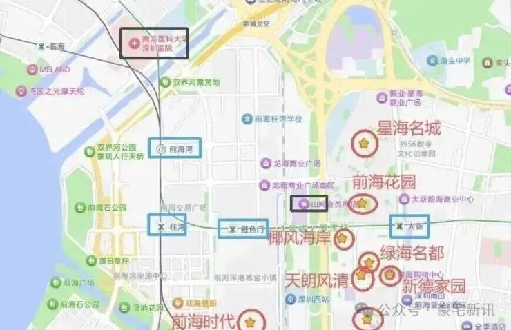 距离 1/5/11号线三线交汇的前海湾站 约700余米。未来还将接入与2条城际线(穗莞深城际、规划港深西部铁路)通达湾区,以及未来的港深西部快轨。