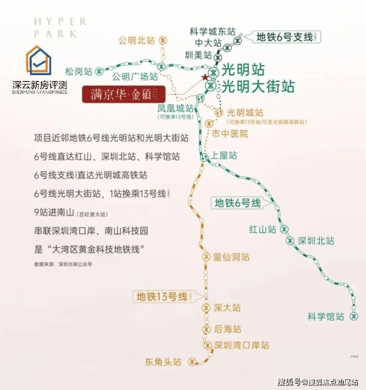 轨道交通:距离6号线光明站约400米,两个站达凤凰城站可换成13号线(在建中),6号线支线二期(在建中)直达光明高铁站