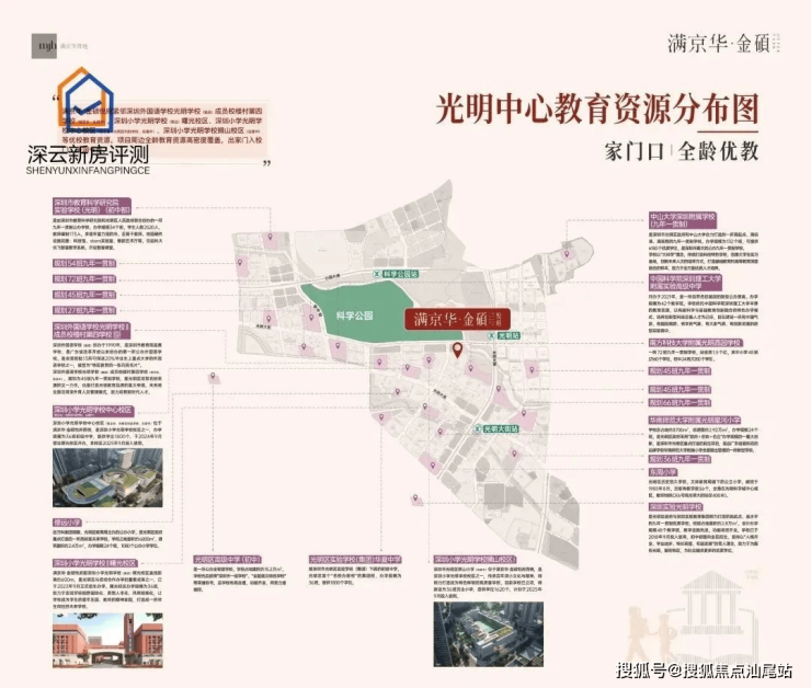 周边市政配套规划也十分密集。项目北侧与科学公园仅一街之隔,东、南侧为深圳小学光明学校狮山校区及初中校区。深圳科技馆新馆、国际美术馆等均在建设中,预计 2026 年前全面落成。未来,这里将形成以科技创新为核心的产城融合示范区,大量高端人才与资源的聚集,将为区域发展注入强大动力,房产增值潜力巨大。对于购房者来说,选择满京华金硕悦府,不仅是选择了一个舒适的家,更是选择了与光明科学城共同发展的潜力与未来 。