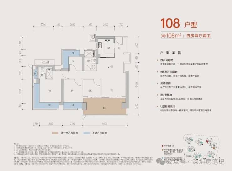 108㎡4房:335-360万,单价3.01-3.24万/㎡