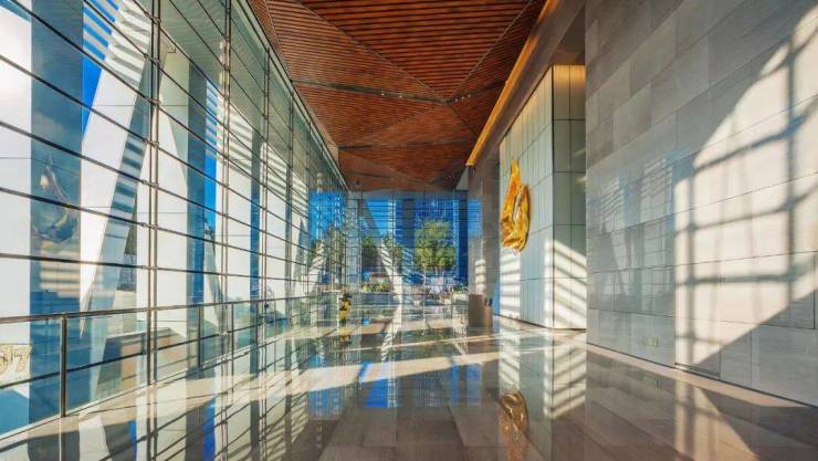 金地中心外立面的设计非常独特,设计灵感来源于中国园林格型窗花,独树一帜的白色立柱造型,完全区别于中心区甚至是市面上普遍的玻璃外墙写字楼,让白天和晚上的金地中心都同样引人瞩目。