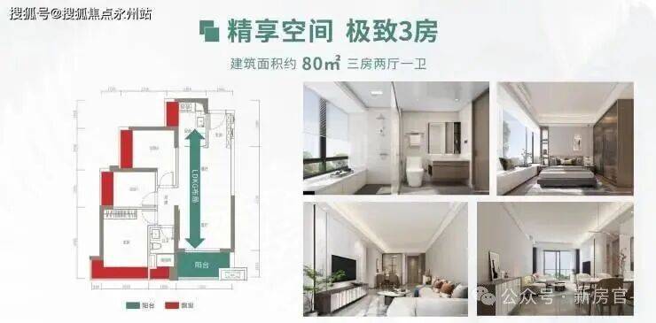 80㎡三房一卫(1栋1/2/3单元02/05户型)竖厅格局,餐客一体,动静分区结构,02户型东南朝向,05户型西南朝向
