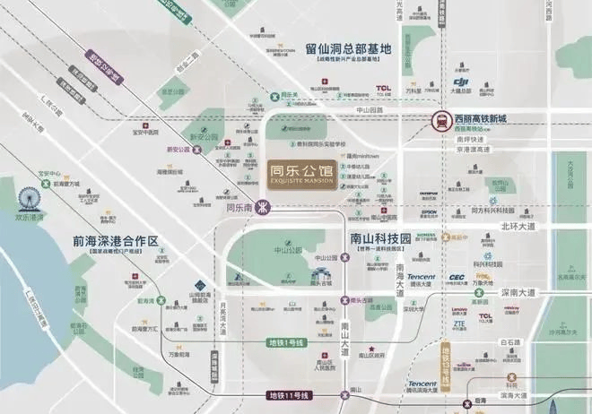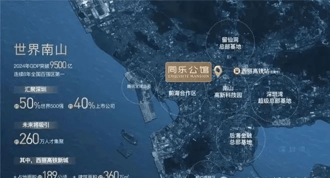 项目雄踞深圳经济主引擎腹地——南山科技园之上,5大全球总部基地核“芯”居住区,西丽高铁新城枢纽发展辐射,共享湾区繁荣。