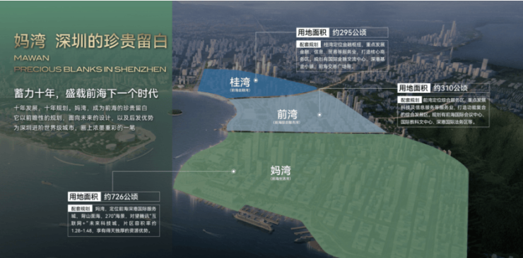 妈湾面积高达726.5公顷,比桂湾(295公顷)和前湾(310公顷)的总和还要多出20%,容积率仅为1.28-1.48,可开发空间充足、舒适度高。未来片区内规划居住人口规模约9.6万人,规划就业人口规模约22.3万人。