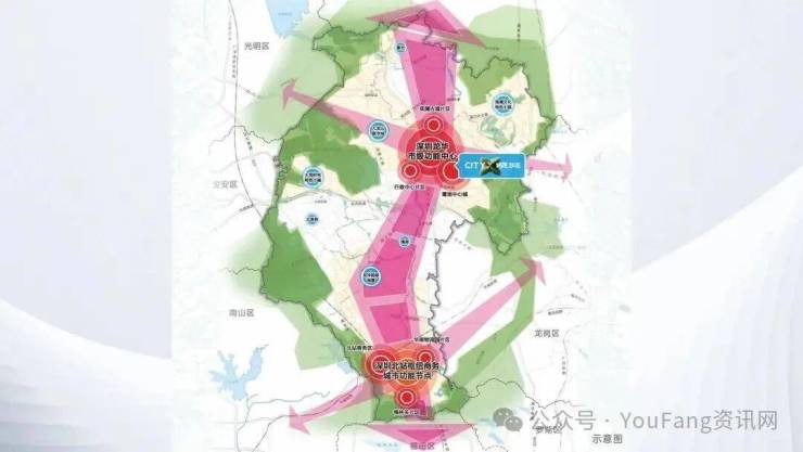 项目隶属鹭湖中心城,点睛龙华北中心,规划为深圳市级功能中心,与北站国际商务中心构筑龙华南北“双中心”格局,升级“行政+科技+文化+生活”综合服务功能,成为深圳北部新中心。(信息来源:深圳市龙华区国土空间分区规划(2021-2035年)草案)