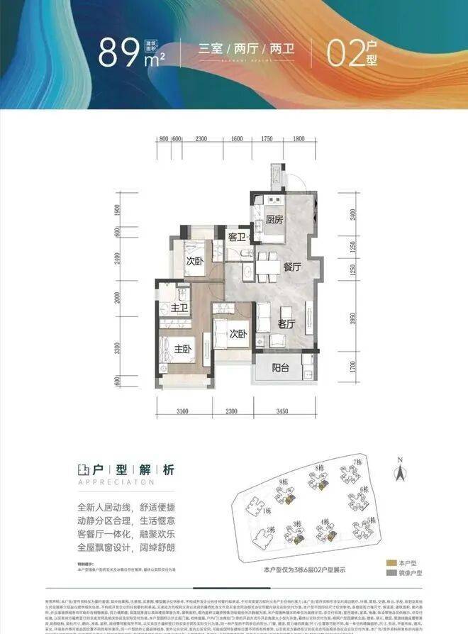 建面约89㎡ 3房2厅2卫(横厅)