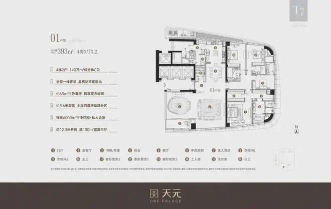 【T7-01户型鉴赏】约393㎡四房三厅六卫